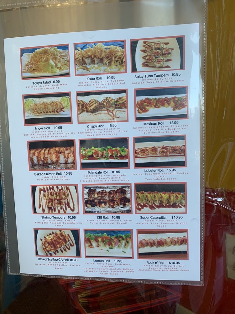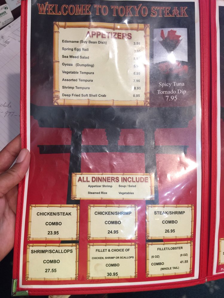 Introducing the menu at Tokyo Steak: Located in Palmdale, CA, Tokyo Steak offers a unique dining experience combining Teppanyaki, steakhouses, and sushi bars. With a focus on customer satisfaction, Tokyo Steak provides a range of amenities such as reservation options, takeout, delivery, and a variety of vegetarian dishes. Customers rave about the entertaining chefs, flavorful dishes, and overall value. Chef Michael is highlighted for his exceptional skills and storytelling while preparing dishes like shrimp and scallop dinners, steak, chicken, shrimp yakisoba, and spicy tuna rolls. Despite some minor issues with service and ambiance, Tokyo Steak stands out for its friendly environment, high-quality cooking, and personalized touch. Don't miss out on this gem for a memorable dining experience with delicious food and great entertainment.